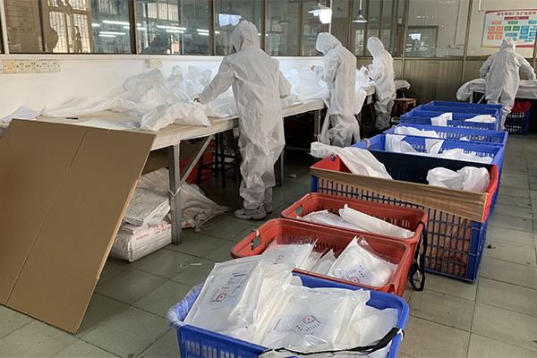 思諾華家人在春節期間每日都不忘關注新聞,看著那些白衣天使在抗“疫”戰爭中艱苦奮戰,相信每一位的心里都充滿了感動澎湃的心情;“生命重于泰山,疫情就是命令”,思諾華人不負使命,春節過后思諾華總經理(滿足復工的條件后)毅然決然的帶領全公司新建防護服生產線,為疫情防控做出一點貢獻!